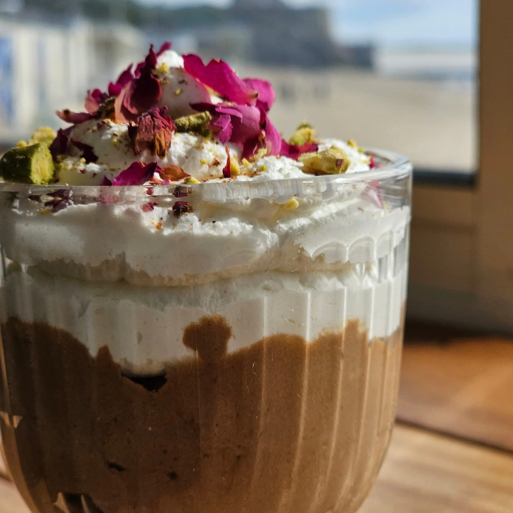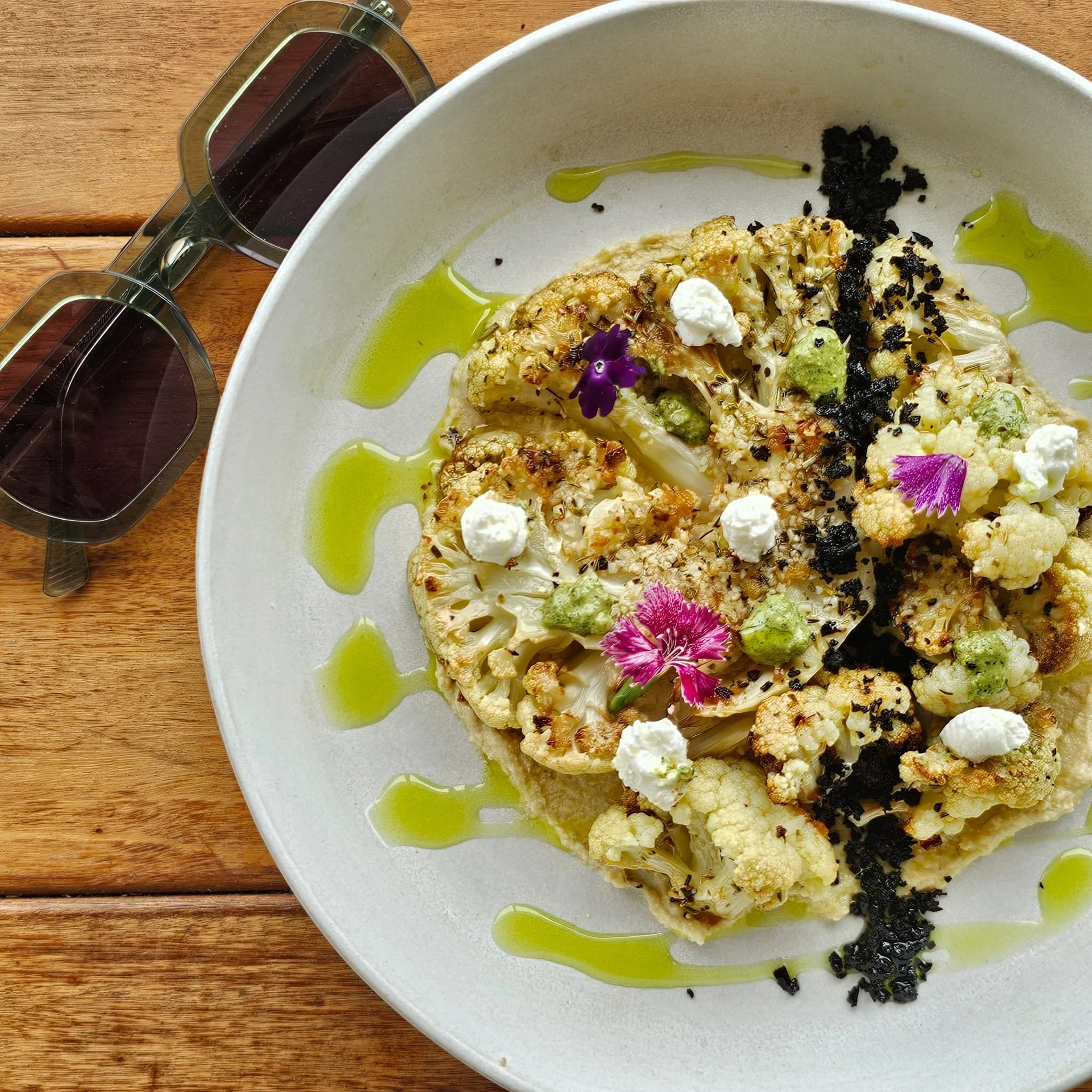 La jonchée comme une burrata, pesto maison et poivre au sel de Kampot