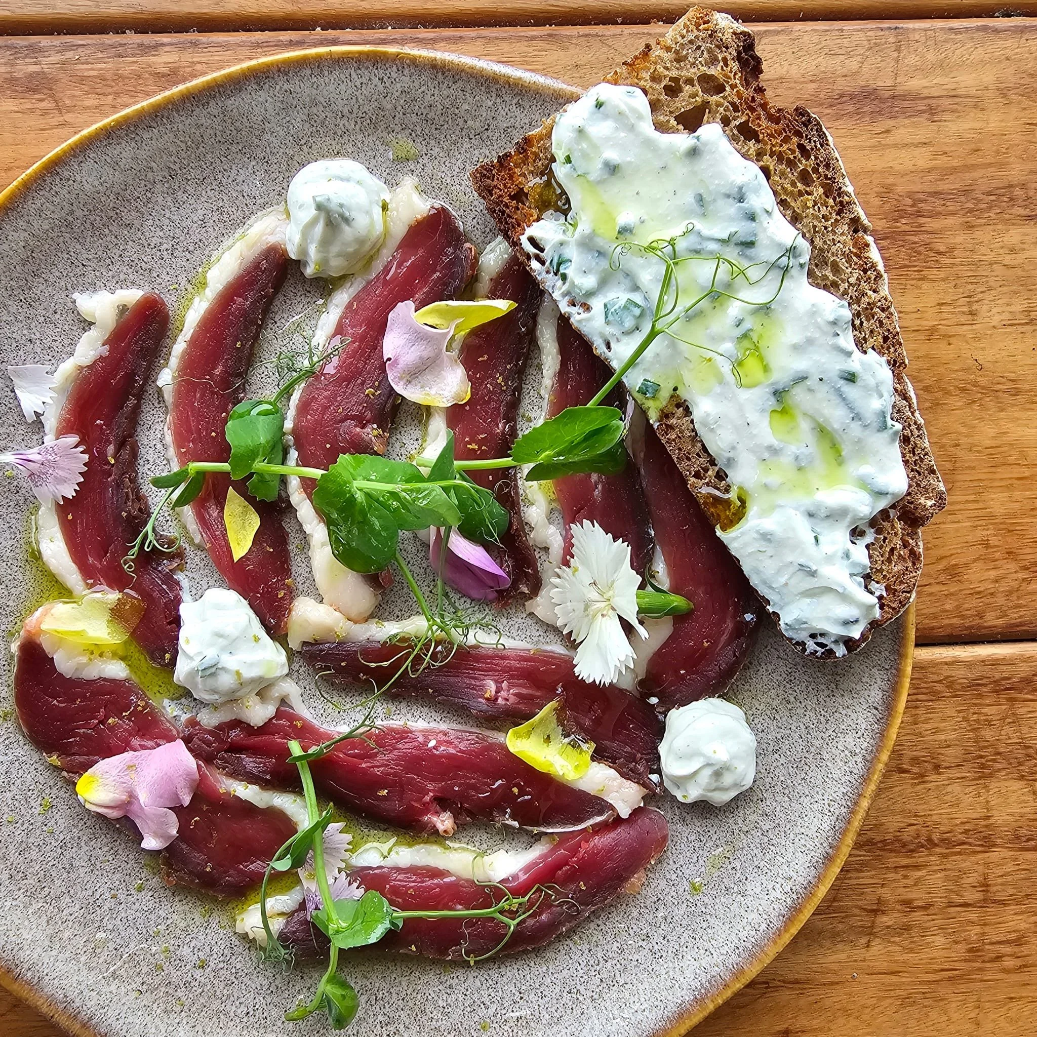 Ricotta aux herbes, huile verte et zestes de citron combava