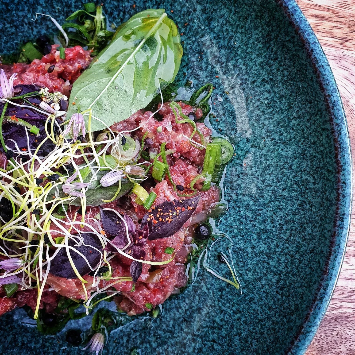 Boeuf snacké, jus de gingembre et herbes fraîches